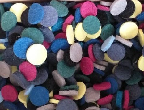Cercurile sunt stantate din fetru IDEA (60% lana si 40% viscoza) respectiv din fetru ZORIN (100% lana). Diametru: 25mm Grosime: intre 2mm si 5mm Culoare: mixta Vanzare: multiplu de 10 bucati