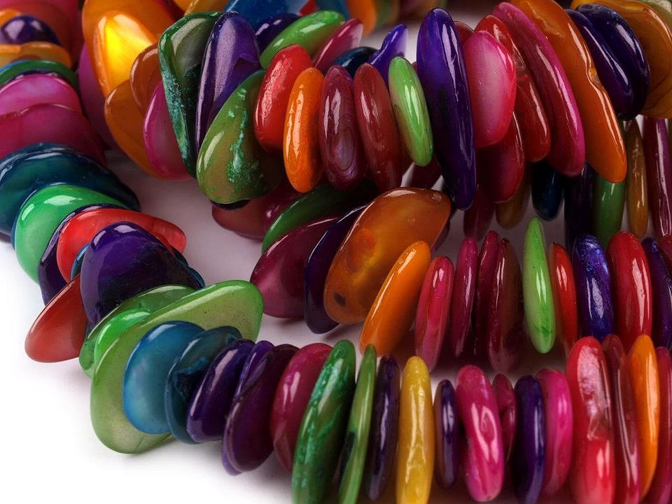 Fracțiunile de imitație de sidef pot fi utilizate pentru realizarea și decorarea bijuteriilor. Aspectul natural este mereu la modă. Va arăta grozav pe firul de memorie sau elastic. Au forme neregulate și dimensiunile variază de la 6 mm la 15 mm. Gaură de tragere 1,2 mm.