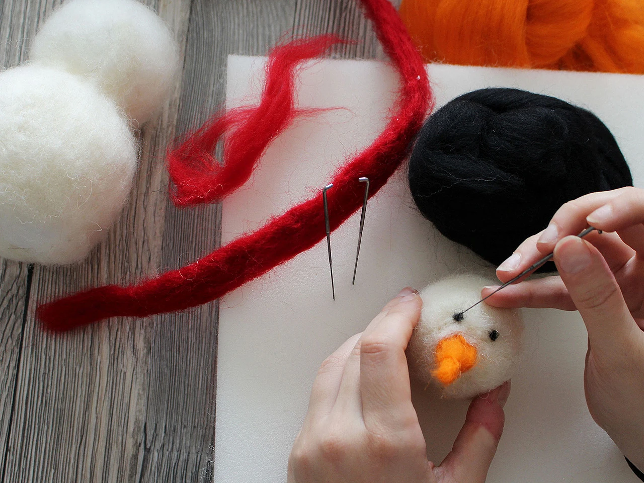 În împâslirea prin înțepare, acul are mici caneluri laterale care prind fibrele de lână. Prin perforări repetate, fibrele se încurcă și se compactează, formând treptat forma dorită. Placa de spumă susține această tehnică, prevenind deteriorarea acului și facilitând modelarea uniformă.